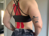 Kinesiology tapes work by lifting the skin from the muscle below. In turn, the tape reduces swelling and promotes blood flow to the muscle to increase its function.