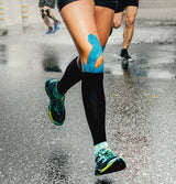 Made from cotton, spandex, and adhesive, kinesiology tape mimics skin elasticity and is stretchier than other athletic tapes. Designed to be water-resistant, you can wear ktape as you sweat out at the gym, swimming, diving, or when engaging in any outdoor activity. You can even wear them as you shower.