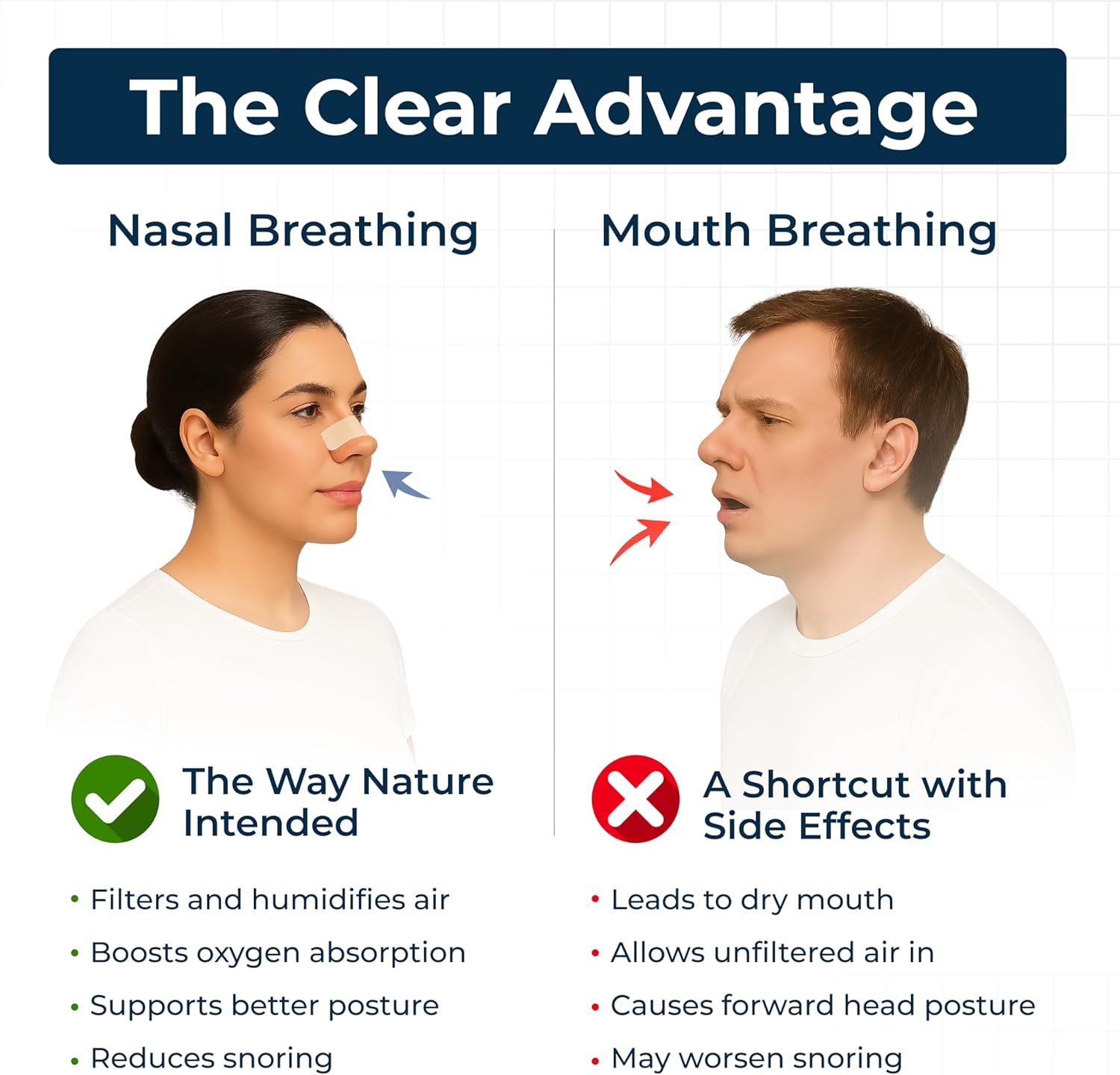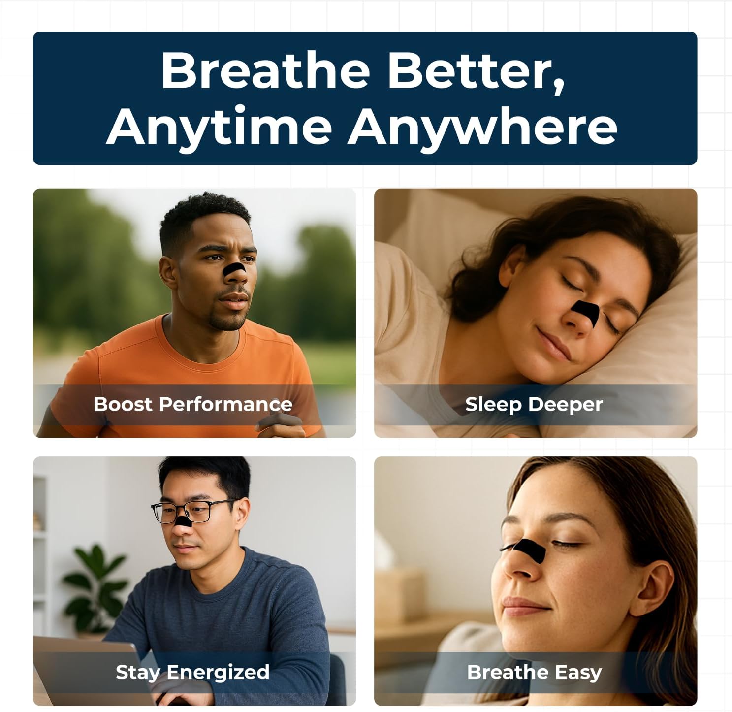 Nasal breathing isn't just for better sleep. Whether you're dealing with nighttime congestion, snoring, or just want to breathe more efficiently — nasal strips help you get better airflow, deeper rest, and fewer issues like dry mouth and bad breath.