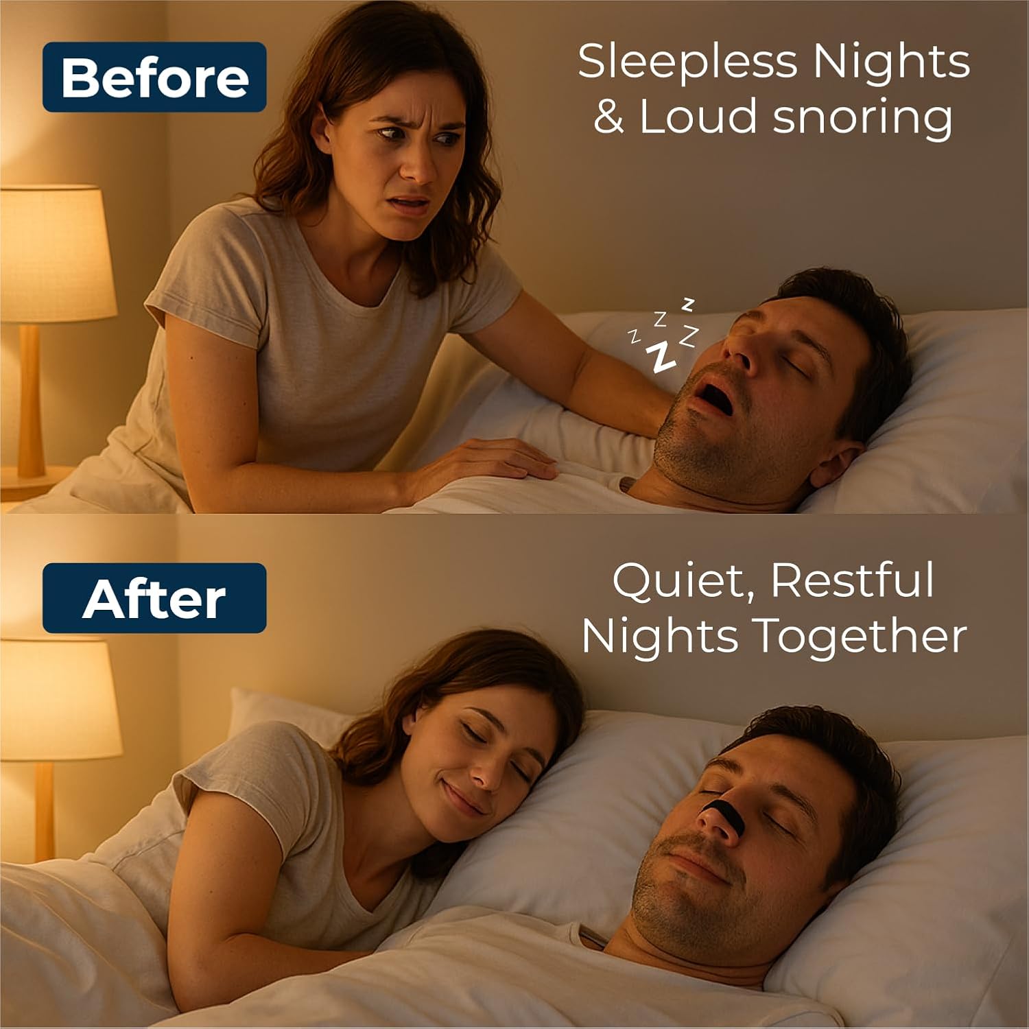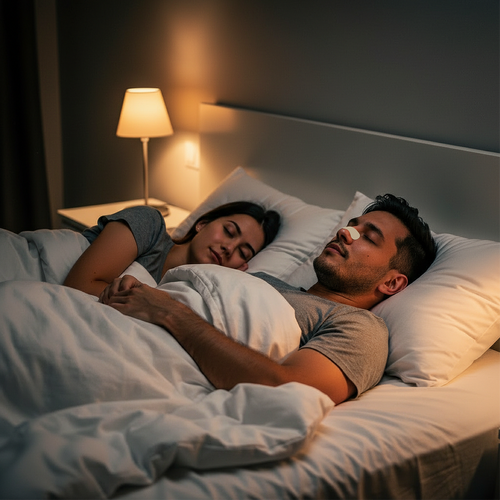 Yes. Snoring is often caused by restricted nasal airflow, especially when lying down. By opening the nasal passage, Breathe+ Nasal Strips can significantly reduce or eliminate snoring caused by congestion — helping you and your partner sleep better.